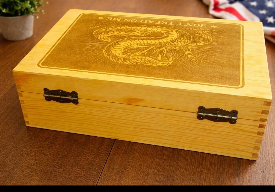 Engraved Wooden Rattlesnake Box, Patriotic Groomsmen Gift, Man Cave Decor