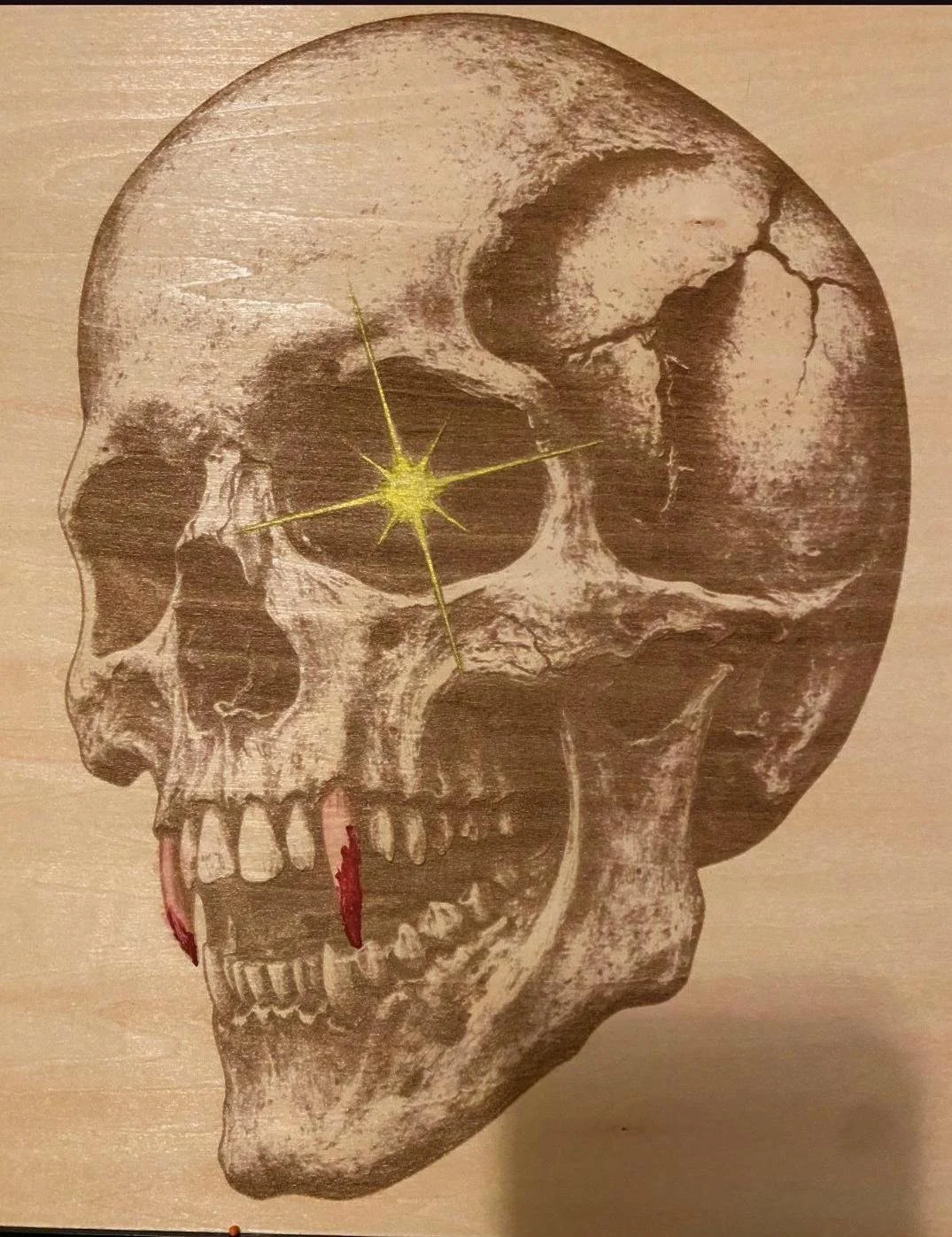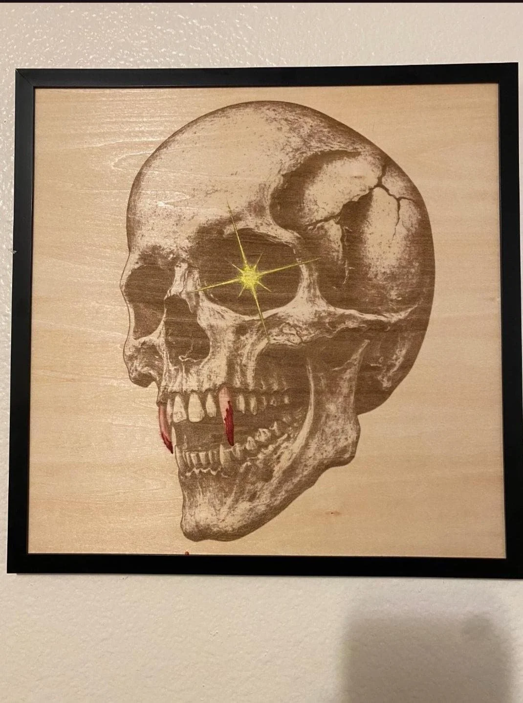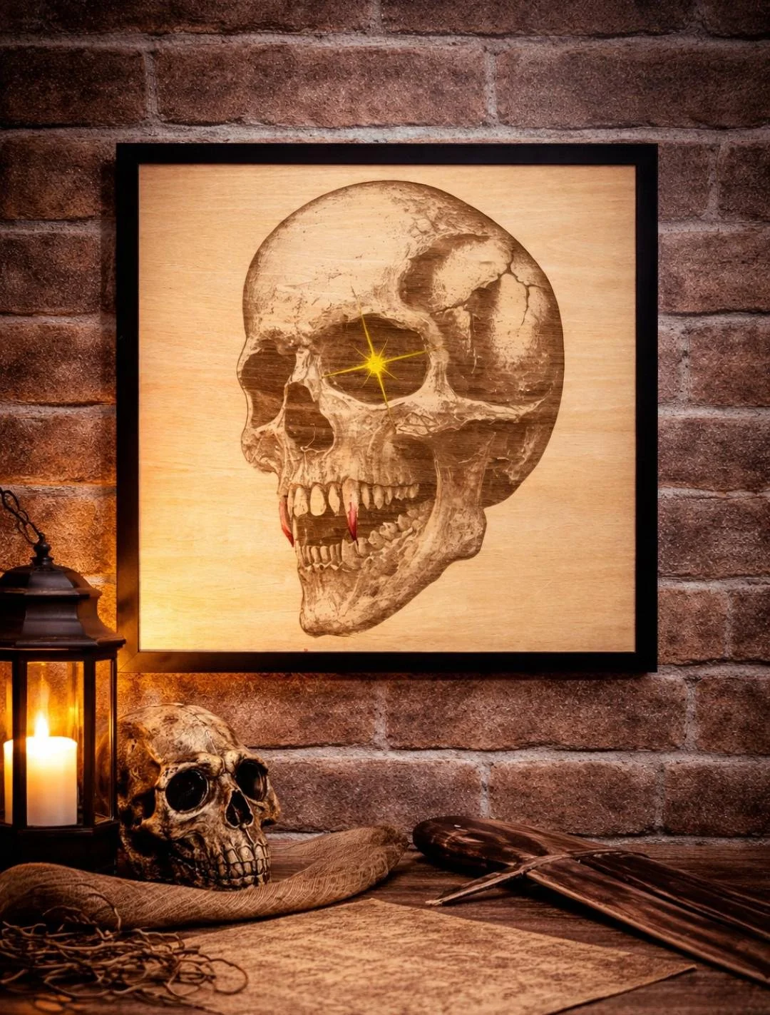 Laser Engraved Skull Wood Sign: Gothic Man Cave Wall Art (12x12)