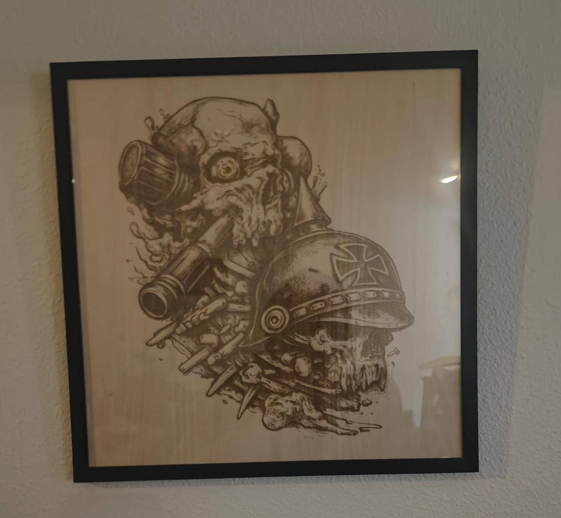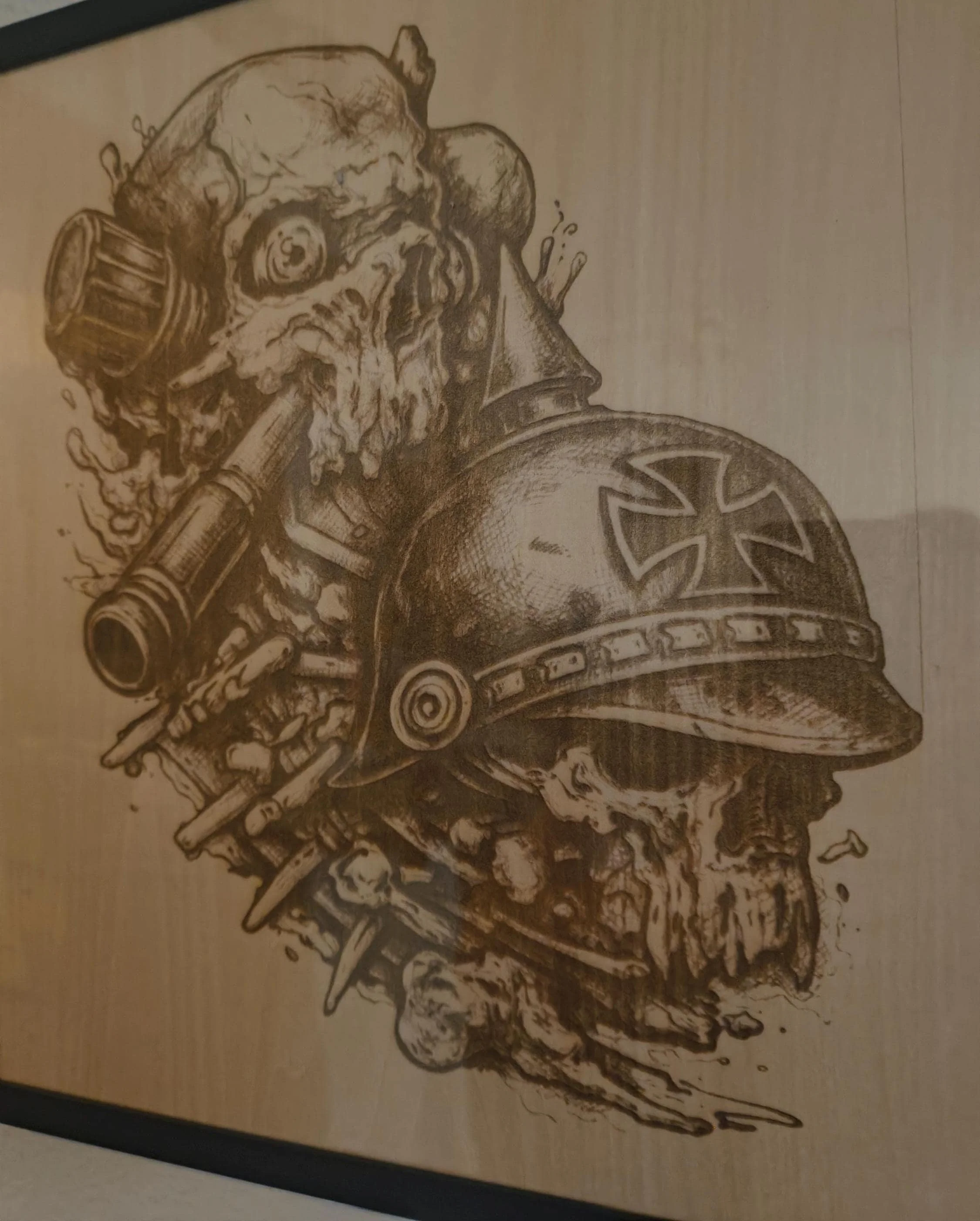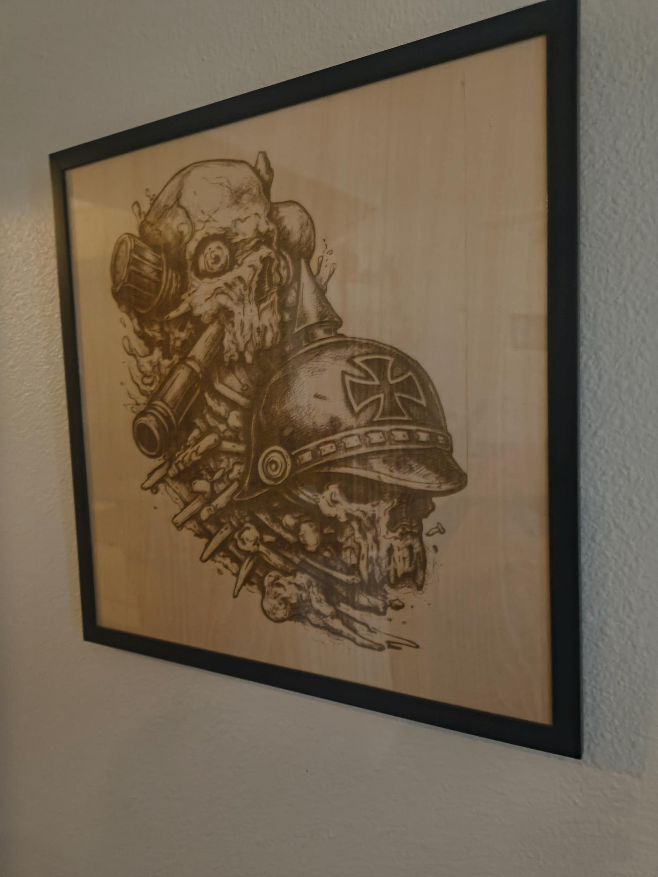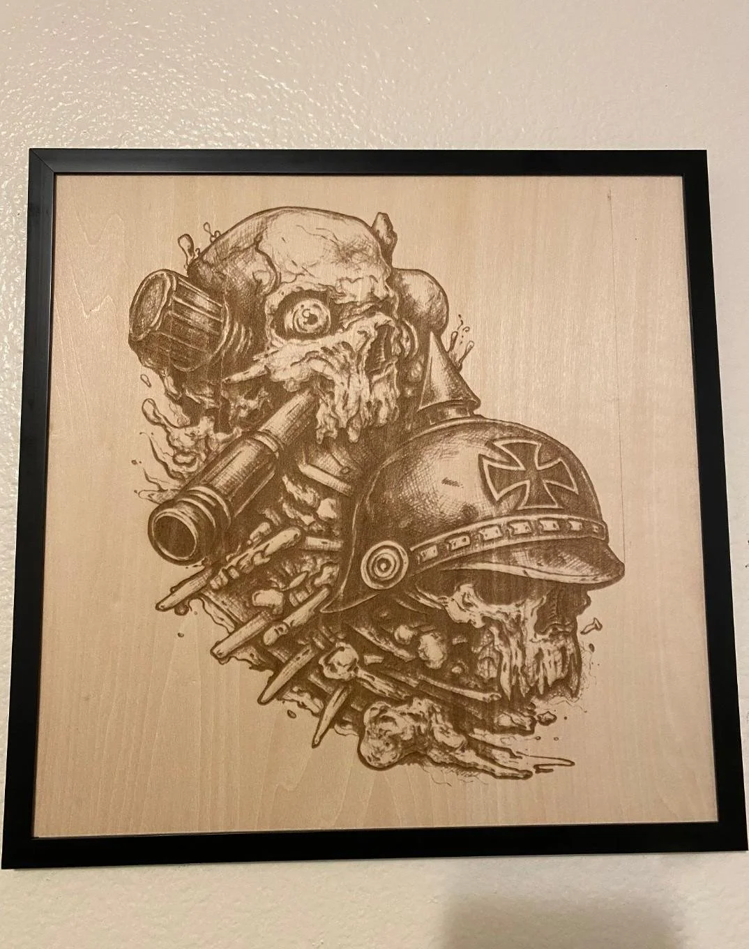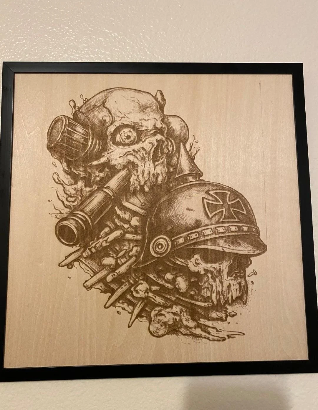 Laser Engraved Wood Skull Art: Gothic Dark Man Cave Decor (12x12 Inches)