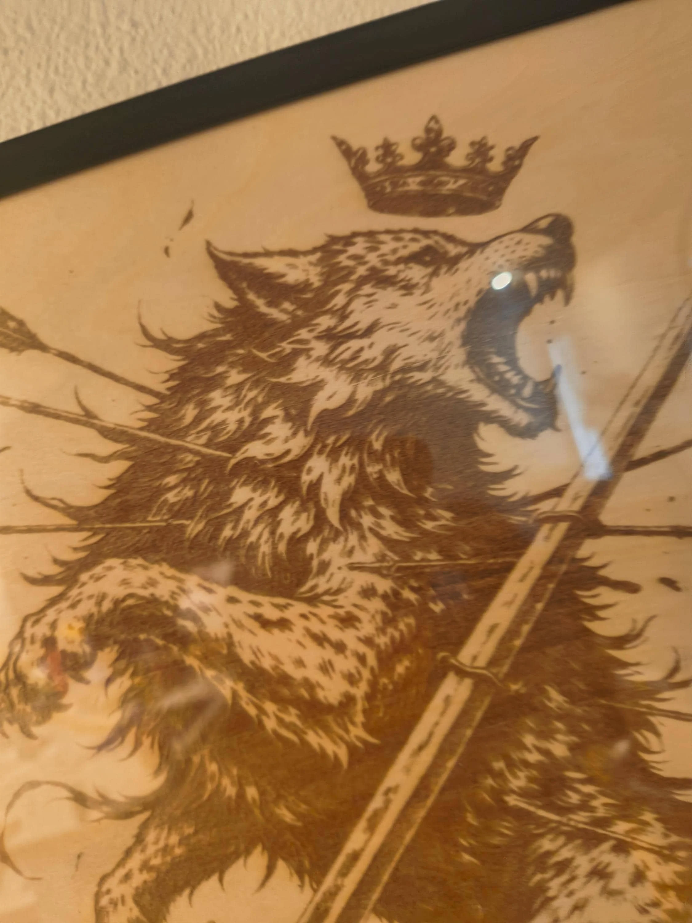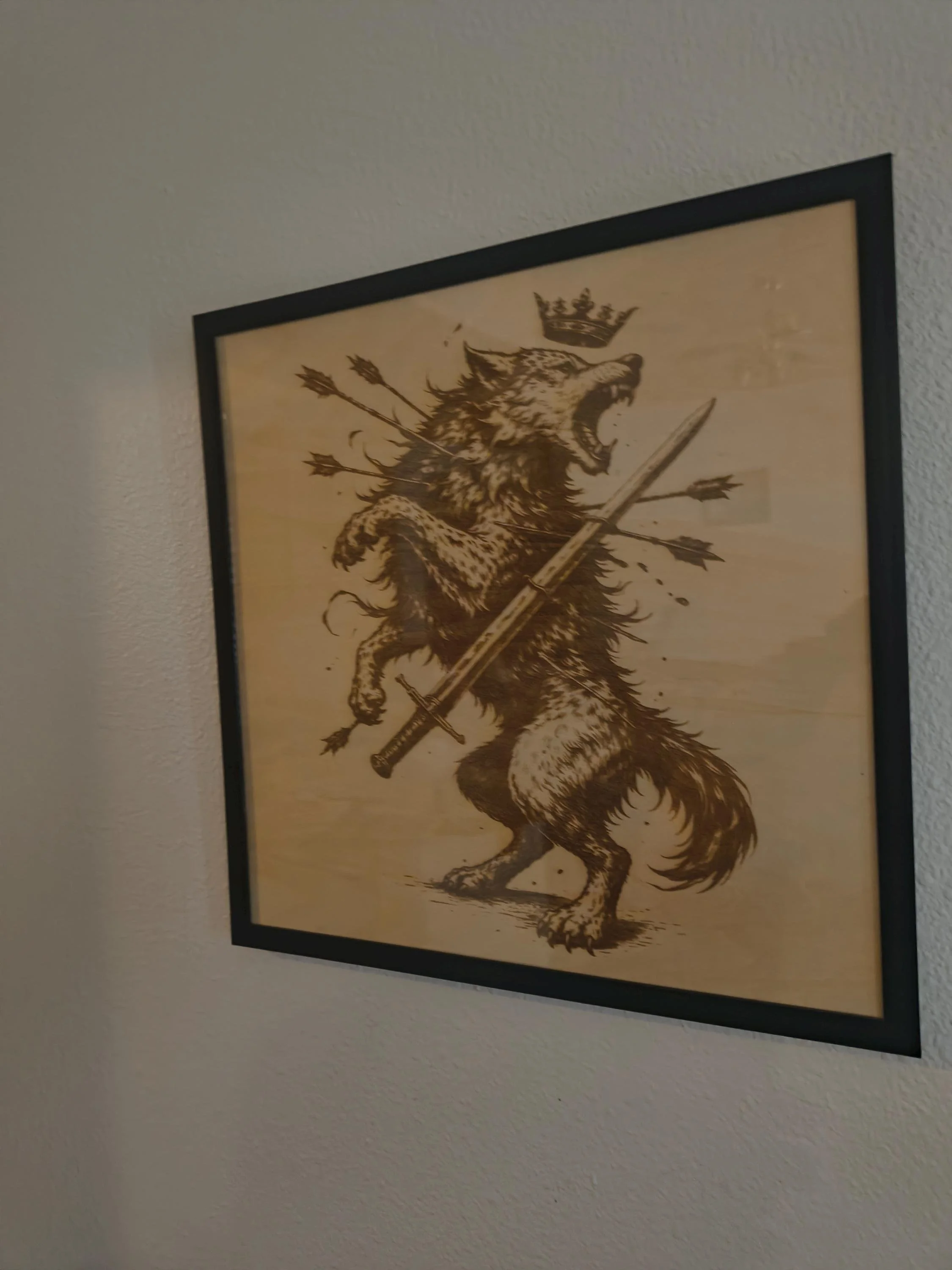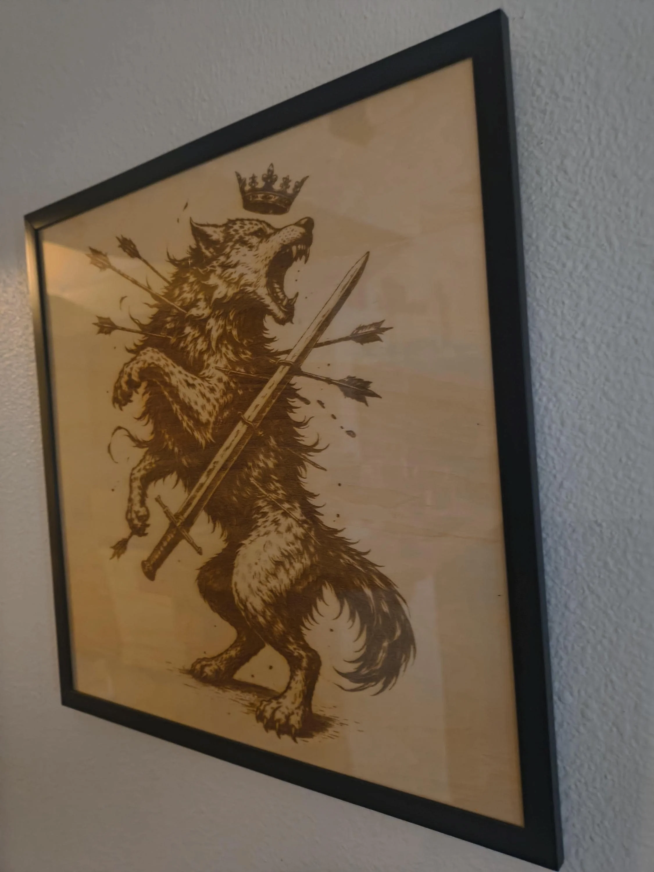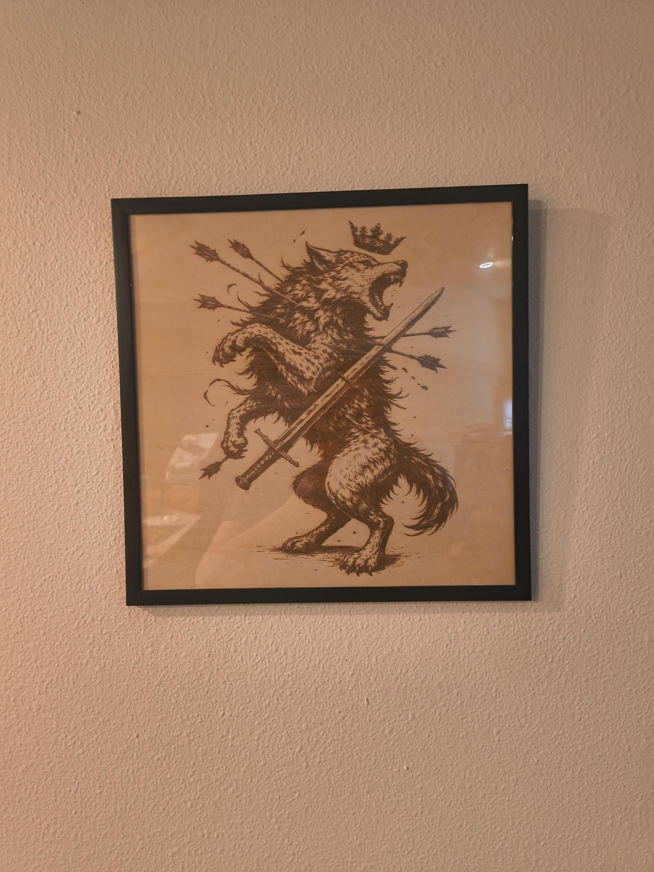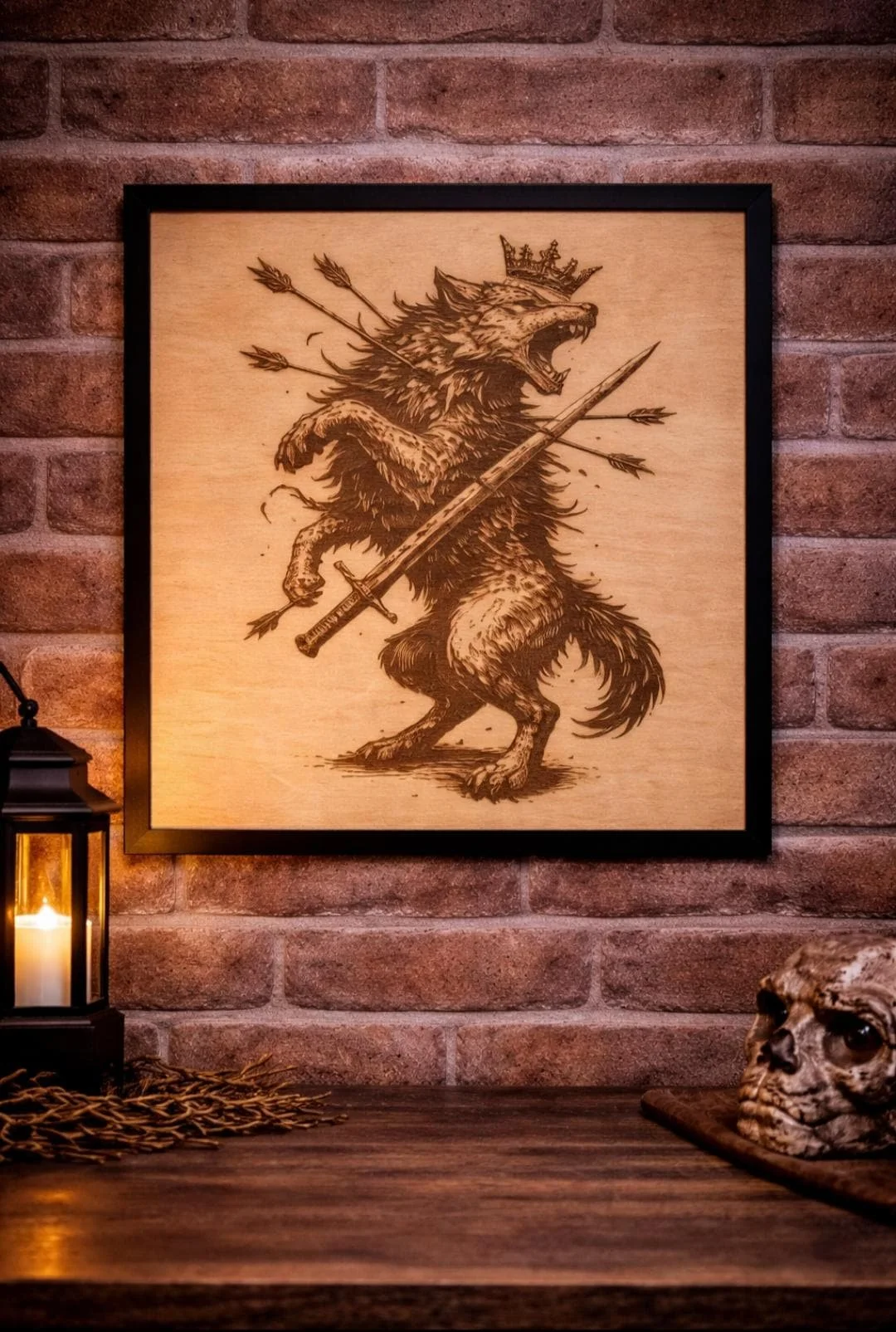 Laser Engraved Wood Wolf King Wall Art, Crowned Wolf Sword Rustic Decor (12x12 Inches)