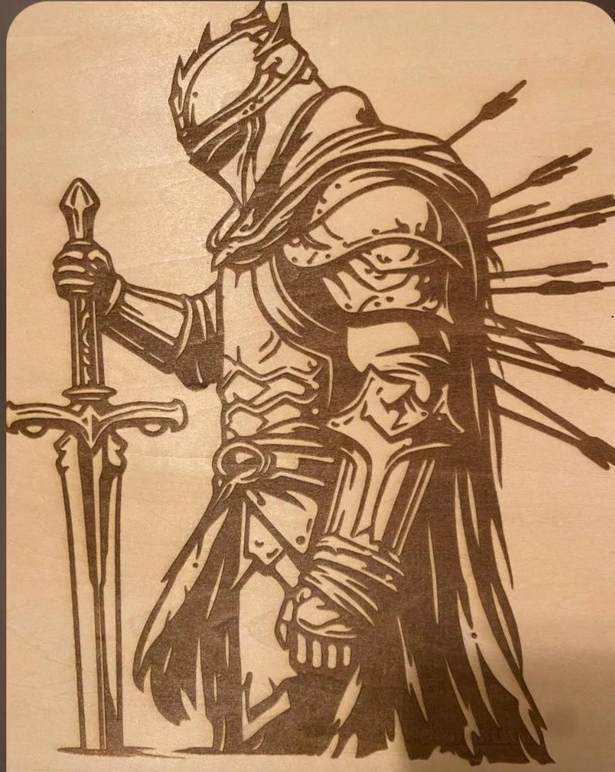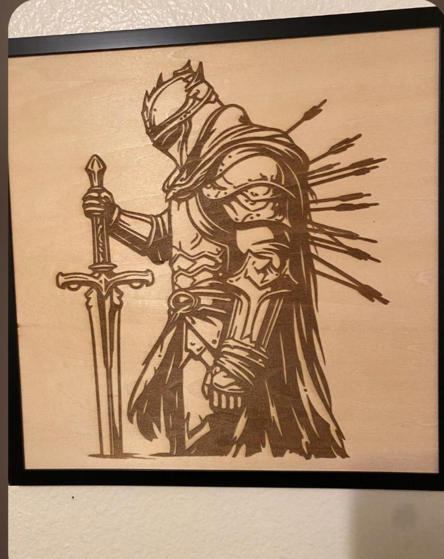 Medieval Knight Laser Engraved Wood Sign | 12x12 Framed Gothic Man Cave Decor